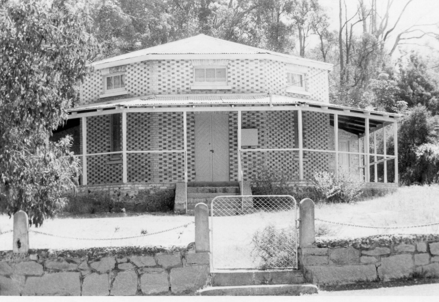 Described as the very first agricultural hall in the district, Smiths Mill's Octagonal building was one of the earliest brick structures in the locality. Its construction came as a result of a community effort. Prominent local orchardist, gravel merchant, former coach builder, and substantial landowner, W.H. McGlew, not only donated the site, but also, with Tom Smith, owner of Smith's Mill, and Jacob Hawter, owner of the Darling Nurseries, went guarantor for a £100 pound W.A. Bank overdraft. A local committee, headed by Josceline Amherst of Darlington Vineyards, designed and oversaw construction of the Hall, using a £300 contribution from the Government. The money was forthcoming because the Public Works Department failed to accept any tenders from the advertisement process begun in January 1896.